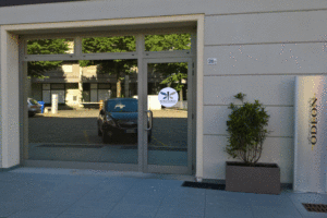Nel piccolo cavedio interno – racchiuso da alte vetrate e pavimentato in piccoli ciottoli bianchi – è esposta una grande cinepresa d’epoca racchiusa in un’ampia bacheca di vetro, a ricordo dell’originale genius loci...